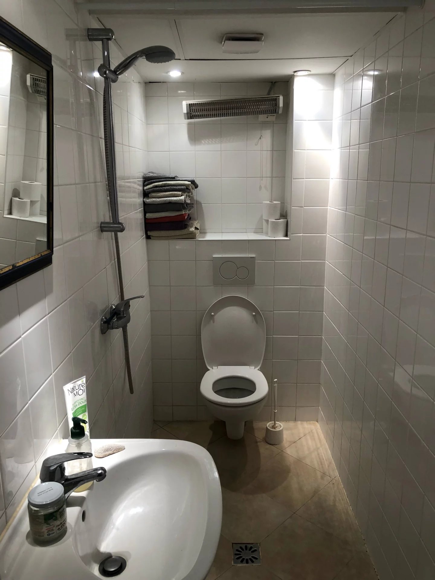 Une salle d'eau comprenant une douche à l'italienne et un WC.